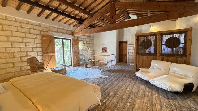L’appartement se trouve au cœur de la propriété qui comprend deux appartements privatifs et un mas, chacun d’eux disposent de son entrée et de sa terrasse privative