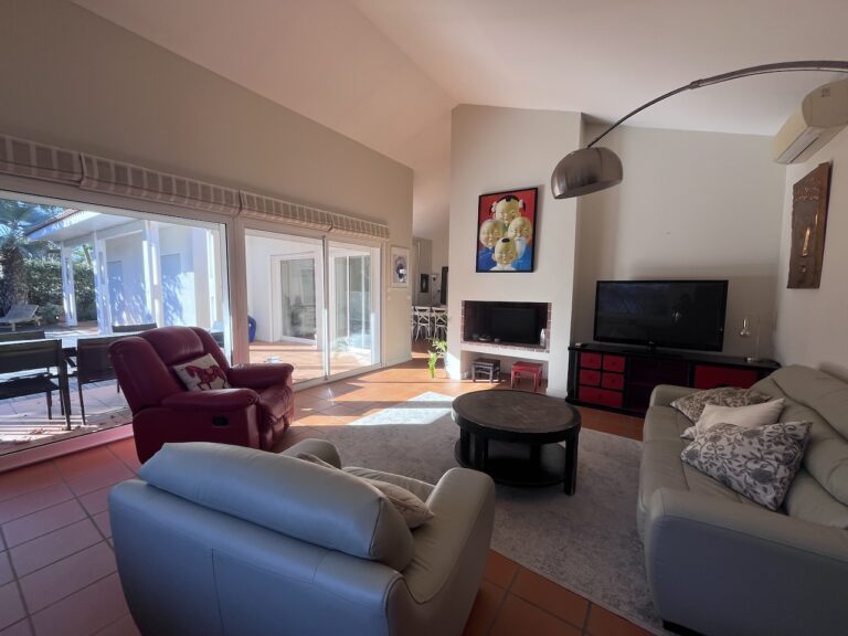 Elle se dessine autour de sa piscine et d’un magnifique jardin paysagé clôturé (possibilité d’avoir un chien), composée d’un bel espace de vie largement ouvert sur l’extérieur et d’une cuisine semi ouverte avec cellier.